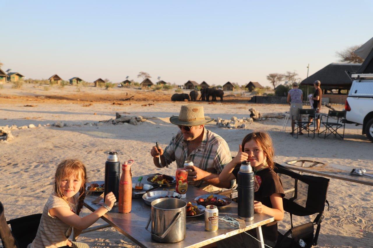1. Were you in the toilet block when the elephant’s trunk poked in? Love the photo of you girls having dinner with Dad & the elephants were standing behind you. X